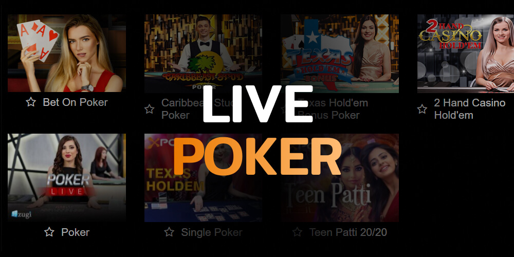 All live games are available in a dedicated lobby. Powered by Pragmatic Play Live, Evolution, and other providers, 150+ titles are presented in the following categories.